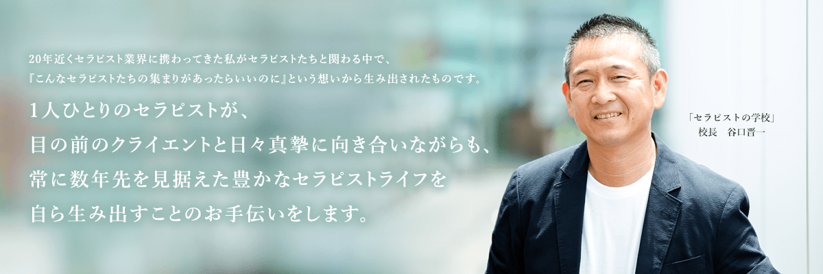 「セラピストの学校」は、1人ひとりのセラピストが、目の前のクライエントと日々真摯に向き合いながらも、常に数年先を見据えた豊かなセラピストライフを自ら生み出すことのお手伝いをします。