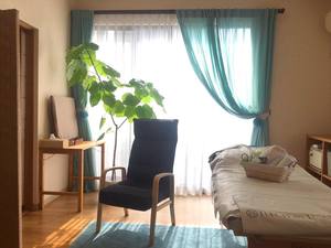 巻木さんのサロンは、庭木茂る自宅のリビングを開放していて、まさしくリトリートサロンの雰囲気です。実はこのサロン、月に5日から10日の営業で、お客様は1日1人のみだそうです。
