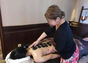 ホットストーンで体を温めながら、頭から足のつま先まで全身をトリートメントする、みずはらさんいわく「比較的圧が強くてエネルギッシュ」な施術です。