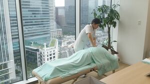 イーヤスのオフィスマッサージの基本的なルーティーンを聞くと、企業での滞在時間(1〜3時間ほど)の間に、1日6〜18人ほどの方に対して、クイックな施術(15〜25分)をする、という流れになるようです。短時間集中型で、なかなかなハードワークです。