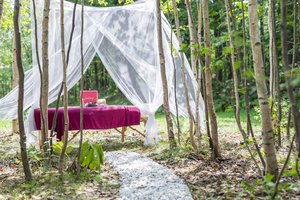 海外では屋外で提供するトリートメントをよく目にしますが、日本ではほとんど行われていないのが現状で、宮武さんはかねてから日本でもアウトドアスパができないかと考えていたといいます。
